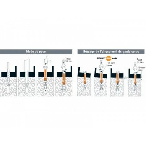 - Desserrage possible après la pose pour la mise à niveau du garde-corps