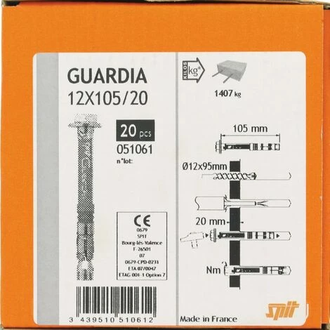 - Cheville métallique avec ETE spécialement étudiée pour les garde-corps