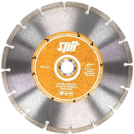 L’outil 922707 de Spit est un disque à tronçonner diamanté robuste, idéal pour la coupe du béton et de la pierre dure. Son diamètre est de 230 mm et il peut être utilisé aussi bien à sec qu’humide. Sa vitesse de rotation maximale est de 6 600 trs/min. Ses autres domaines d’application sont : les tubes en fonte et les briques.